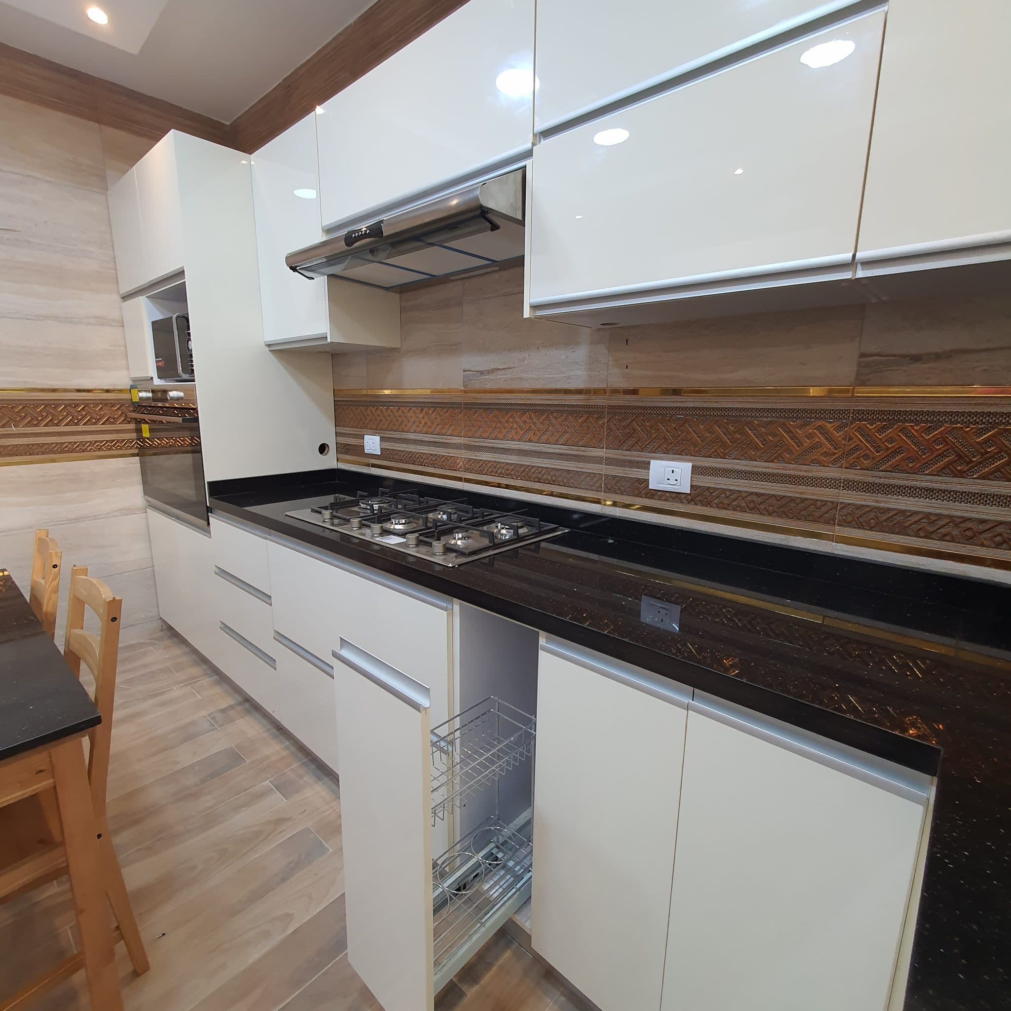 Our main task is to achieve what you want to design a modern kitchen that suits your taste, so send us a description of the poly lac kitchen model that you want or send a picture from Google or Pinterest, and we guarantee you a design that fully matches your request.